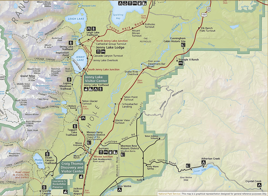 - Exit park at South Entrance and enter Grand Teton National Park