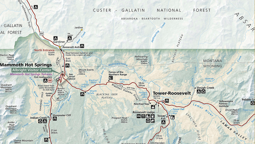 - Tower Roosevelt area and Tower Falls
