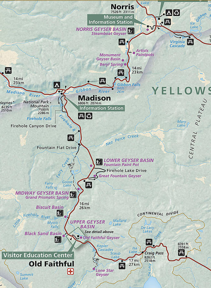 There are a plethora of websites, guide books, travel sites and the like on Yellowstone and there is no reason to recreate another one here. The park is huge and as such contains a whole host of areas to explore. The shear variety, diversity and abundance of geological and geothermal features runs the gamut of ones imagination, not to mention potential wildlife sightings. It’s just awe inspiring how many natural wonders emanate from this one small section of the earth now encompassed within Yellowstone National Park, the largest national park in the U.S. As is our custom, we methodically planned our days in advance and tactically explored each section of the park. Below is an outline of our itinerary, which worked extremely well. The overriding goal was to cluster the sightseeing in specific regions to minimize driving times – both back and forth from the two hotels and intraday between sights. This also included avoiding as best as possible driving the same route repetitively, as the scenic drives are part of the experience. Keep in mind when perusing the itinerary, Yellowstone is enormous and there are likely several ways to effectively navigate the park. In retrospect we believe 4 1/2 days is an optimal amount of time to see it all and following the program below will get you to all the sights and then some, efficiently. Finally, we traversed Yellowstone using two widely separated hotels as home base. We would encourage this strategy as well. Not only does it optimize driving time, it also avoids the repetitiveness of traversing over the same roads back to the hotel.